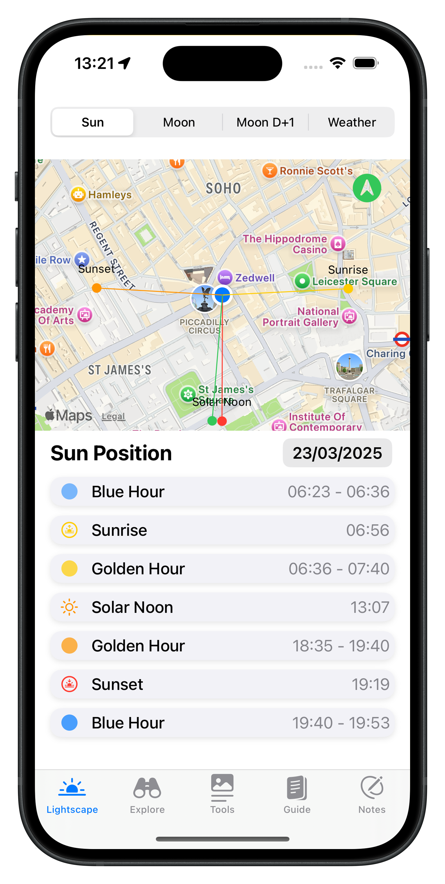 If you want to plan Blue Hour with precision, Photo Xpert makes it easy. The app shows the exact start and end times for any location, along with a clear timeline that helps you prepare your shot before the light changes. It’s a simple, reliable way to know when that quiet blue glow will appear — and how long it will stay.
