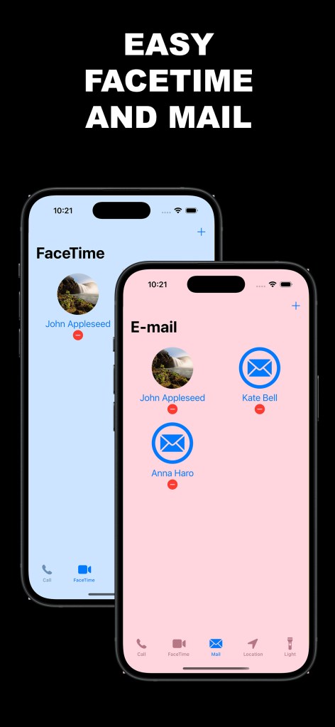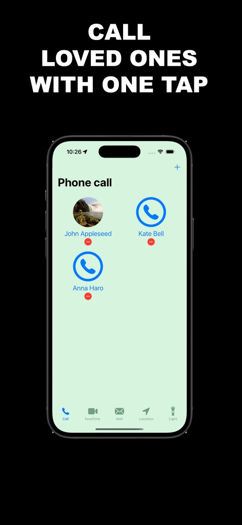 With one clear tap, you can call, FaceTime, or email the people you trust — no scrolling, no searching, no typing.