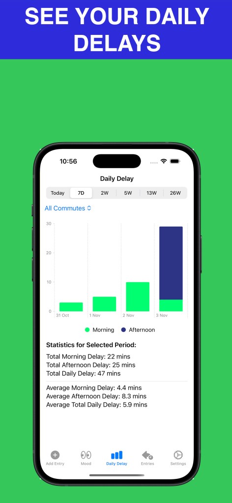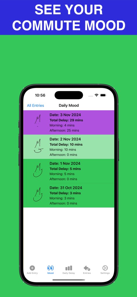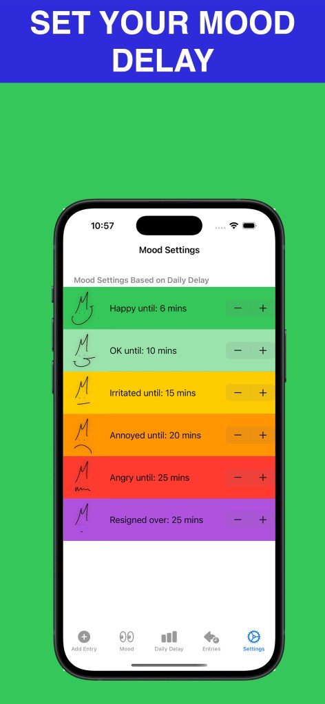 and let the app translate your minutes of lateness into a clear, color-coded mood.